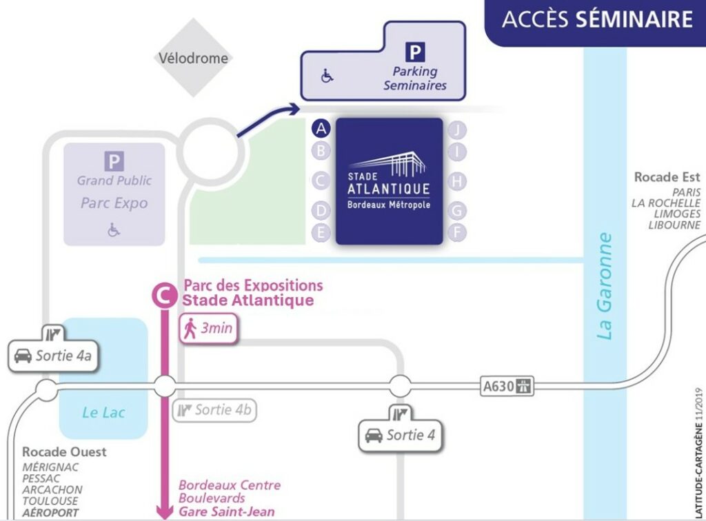 Pour le train : arrivée à la gare Saint-Jean, puis prendre le tram ligne C à l’arrêt Gare Saint-Jean jusqu’au terminus Parc des Expositions (à 400 mètres à pied du stade).